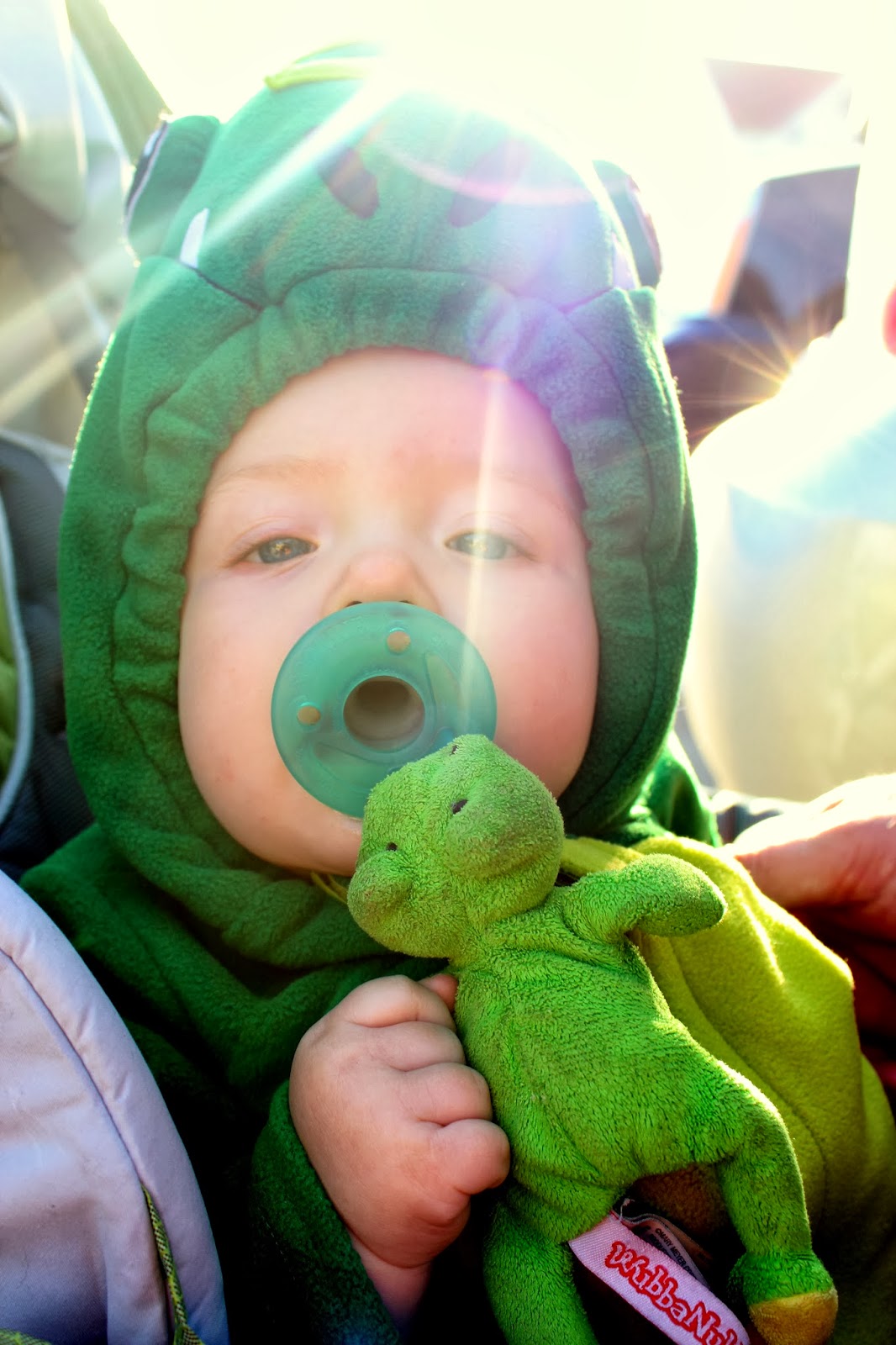 - He was a dinosaur for Halloween.